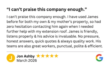 "Hi I'm James and I've been roofing in Solihull & Coventry for over 14 years. I started this business with one goal - to give homeowners a straight, honest service without the hard sell or hidden costs.